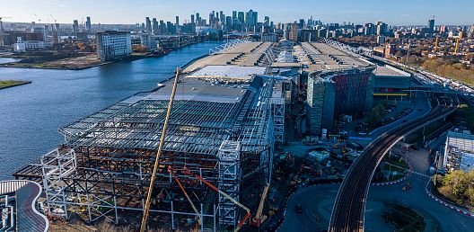 Final steelwork added to ExCeL's 25,000sqm expansion as project on track for October 2024 completion.